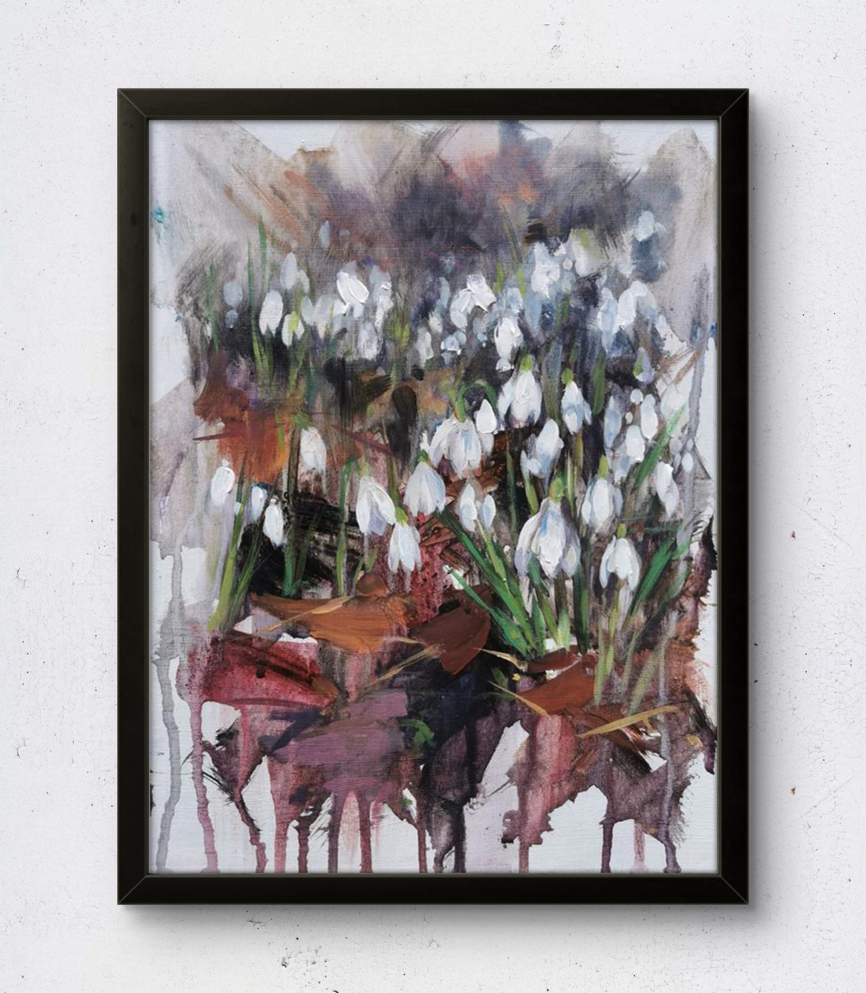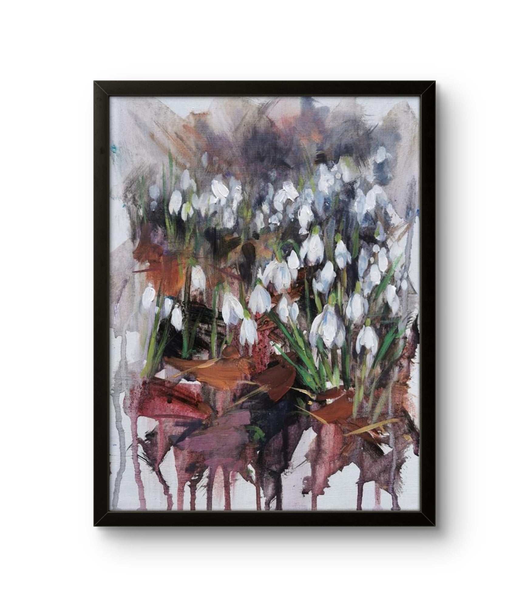 This painting by Mary Louise Butterworth is acrylic paint on board.  Frame is AI generated for illustrative purposes. Cost includes black wooden tray frame.