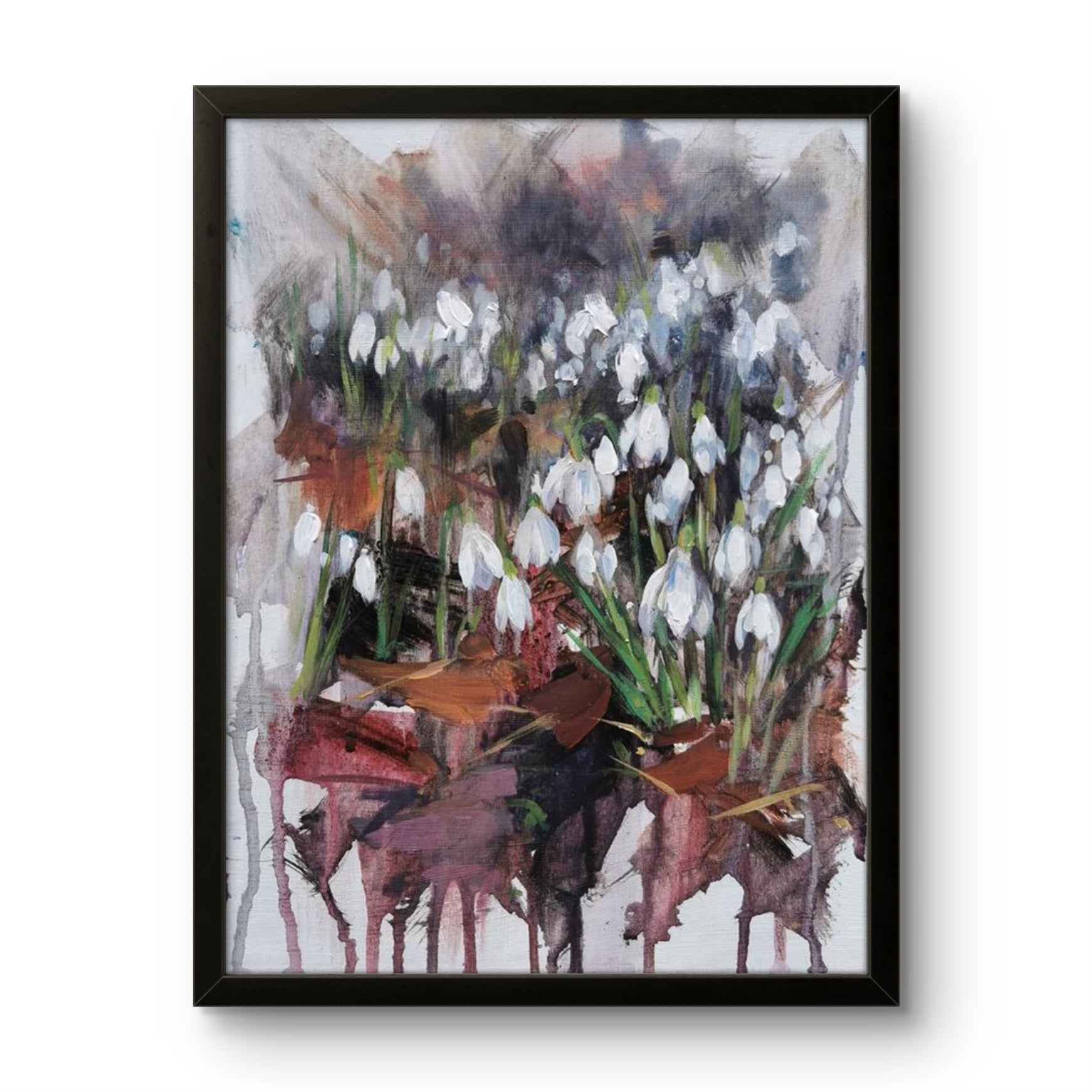 This painting by Mary Louise Butterworth is acrylic paint on board.  Frame is AI generated for illustrative purposes. Cost includes black wooden tray frame.