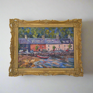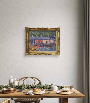 An original piece of fine art painted in oil on canvas by Howard Butterworth and framed in a Frinton handmade gold swept frame. (Interior is for illustrative purposes only)